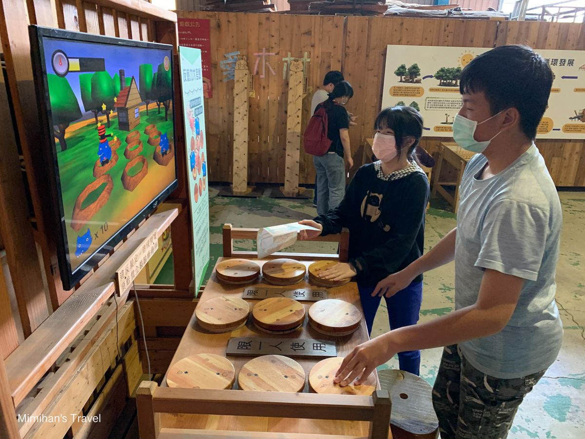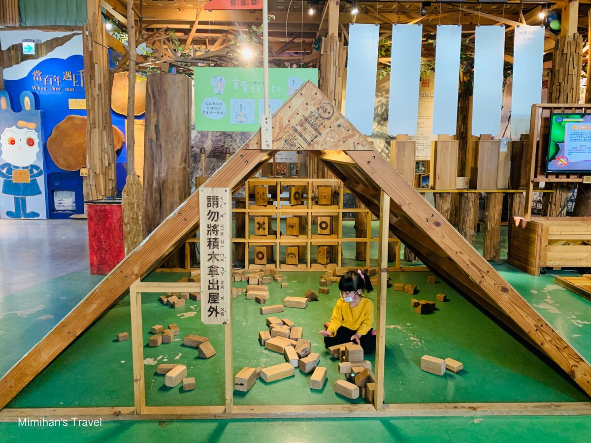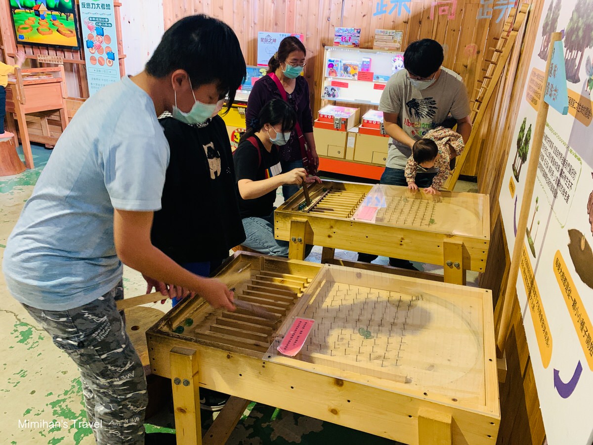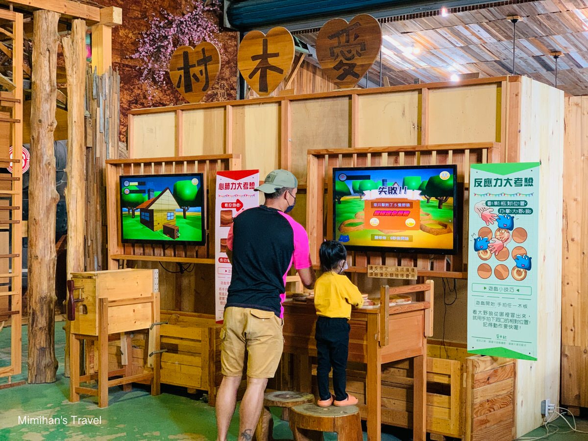 接著就來到愛木村親子遊戲區,裡面有很多用木頭製作的玩具積木、小車車,和好幾款結合電動的遊戲裝置,通通都可以免費玩,對於學齡前小朋友們來說還是挺新奇有趣。