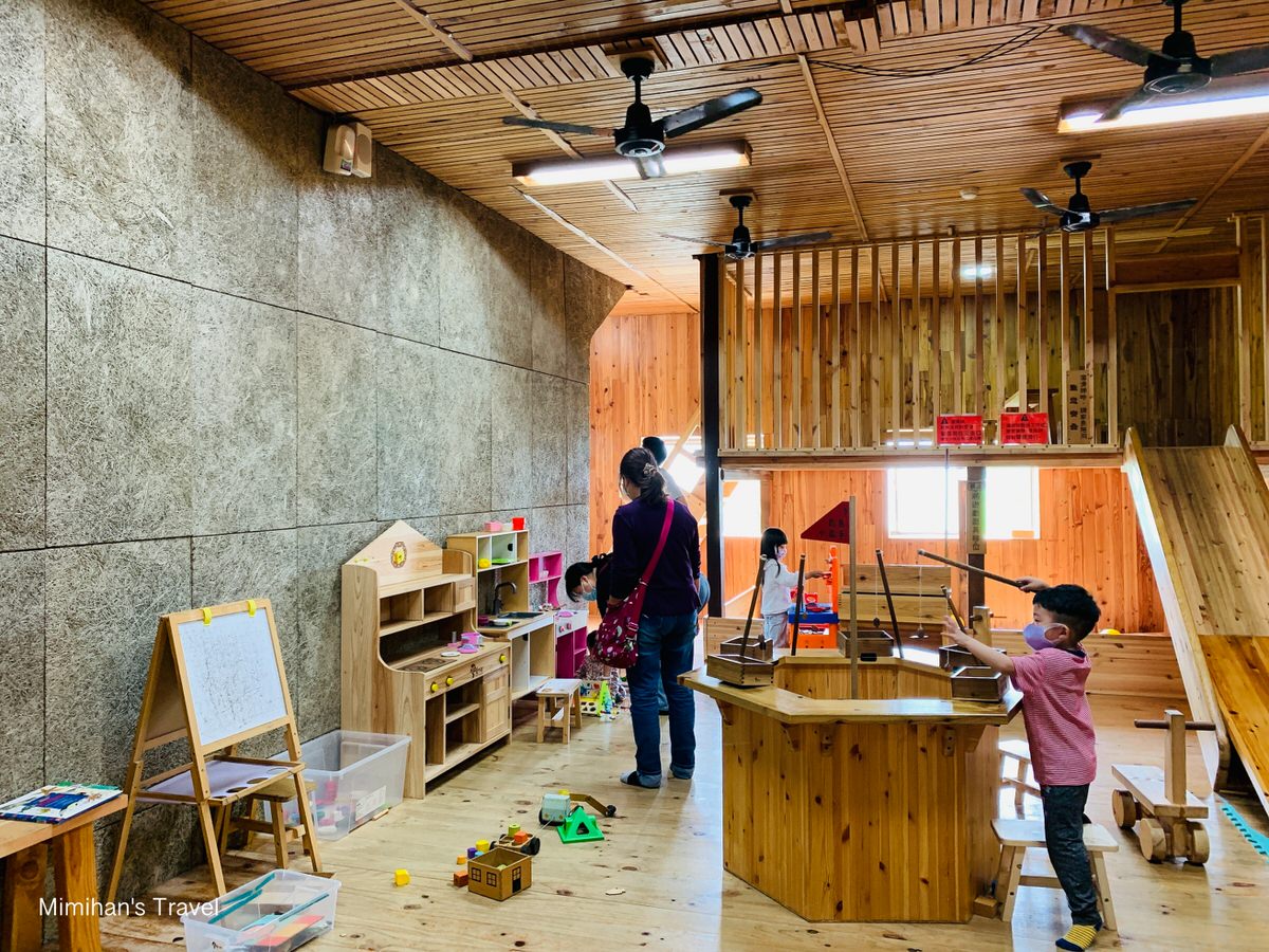 順著動線往裡面走,館內有好幾間小教室,可能是用來接待遊覽團等團體,而其中一處是規劃成小小孩的遊戲室,裡頭家家酒、溜滑梯、小積木一應俱全,大家在外面看台灣木業的歷史,放孩子在這裡玩也不用擔心。