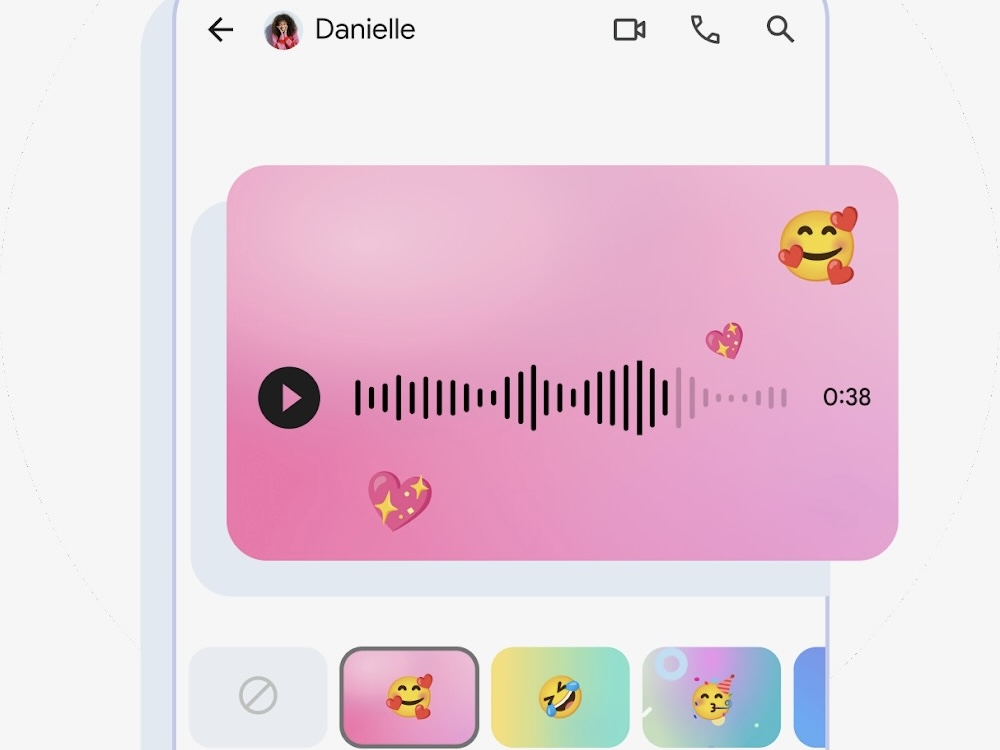 Google 也正式為語音訊息加入了降噪功能,提高語音訊息的整體音訊品質。在新的訊息視窗中錄製後,可以看到 9 種不同的情緒,讓即便是只有聲音的訊息也能為對方傳遞出這則訊息的情緒。