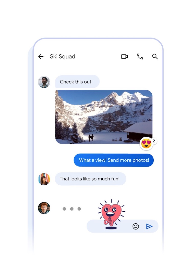 Google 訊息現在已經是 RCS (Rich Communication Services,富通訊解決方案)標準,就是用戶能在訊息中看到通訊對象是否正在輸入內容(如果正在回覆會有 … 的即時顯示)、可接收讀取回條、分享檔案和高解析度相片與影片等。現在 Google 也要把可愛的圖案表情符號、錄音等功能再加入 Google Message 中,讓用戶的訊息變得更生動又豐富!
