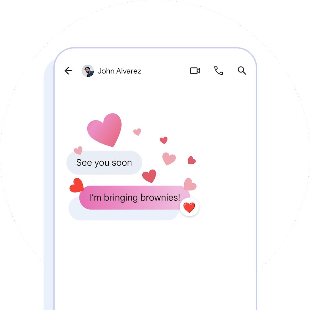 Google Messages 現在起可以讓用戶根據每個對話來自訂對話的顏色和背景(包括應用程式欄位)。Google 還推出了可以自己設定自己丟出去訊息的背景顏色,而且會與對方同步變化。Google 也把 👍❤️ 😂😮😡👎💩🎉😠😢 這幾個回應訊息的 emoji 變成動畫的樣子,讓使用上更有活力感。