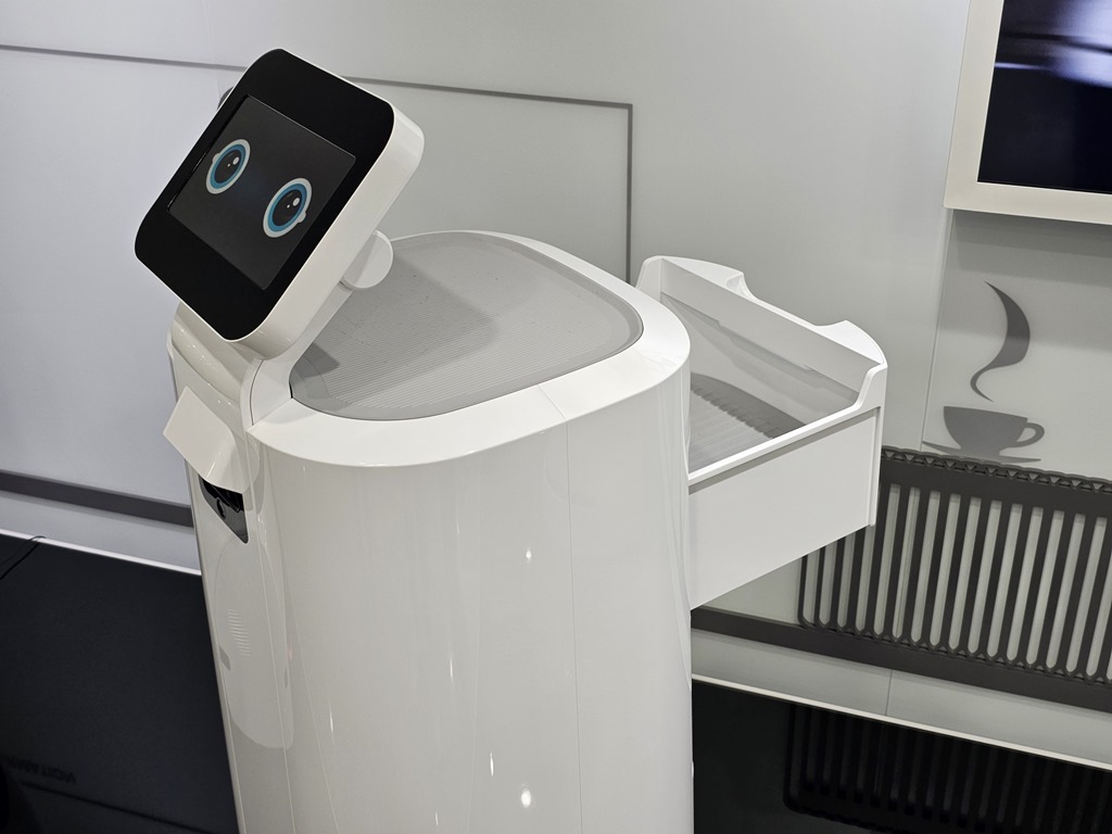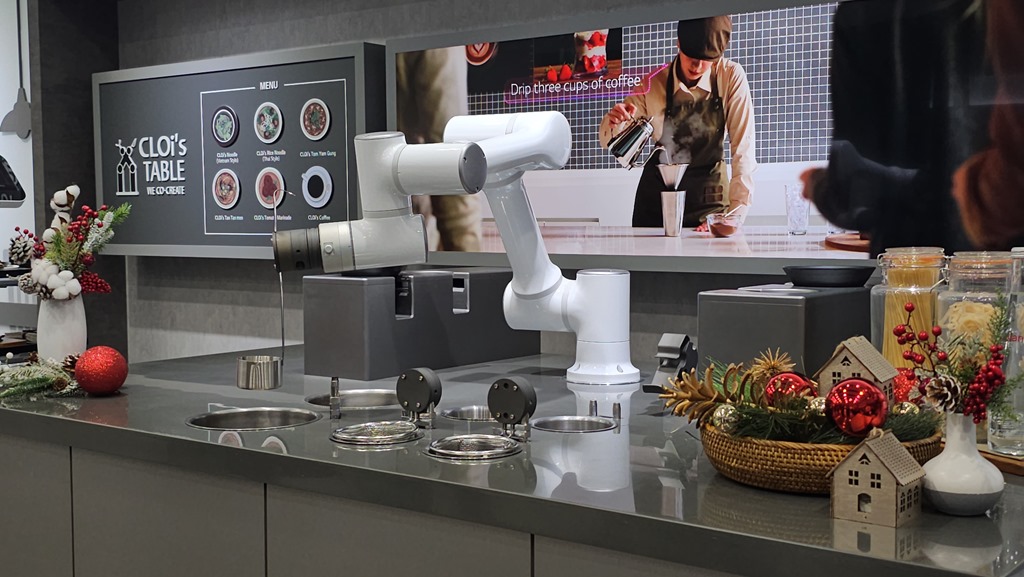 而能夠做料理的 CLOi 機器手臂,可進行多種用途,無論是煮麵、沖咖啡或是各項料理工作,都可利用所設定的程序隨時更換握持工具。像是所展示的煮麵機器人,連煮麵後的甩水,或是將高湯倒入碗中的動作,都可精細完成。