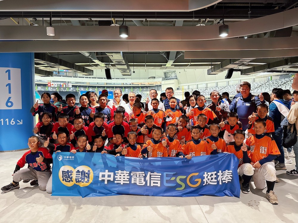 在全場 1 萬 7 千名球迷見證下,台灣首座巨蛋棒球場第一場國際賽昨正式登場,為勉勵小選手們能觀摩國際級賽事各國球員精湛球技,開拓視野及獲得啟發,中華電信特別邀請「中華電信 ESG 挺棒 偏鄉少棒捐贈活動」受贈單位-南投縣新街國小及千秋國小少棒隊至現場觀賽,由董事長郭水義親自陪同,一起感受在大巨蛋內為中華隊應援的震撼加油聲,期盼小將們未來同樣能站上台灣棒球最大的殿堂為國爭光。