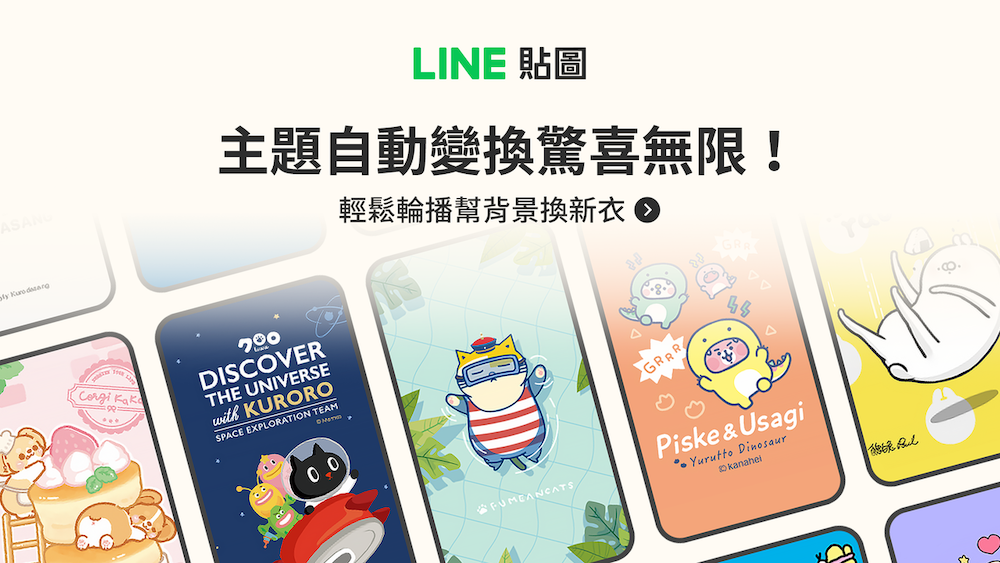 一推出就受到眾多用戶討論喜愛的主題自動輪播功能,只要設定一次,就能讓系統「定時」變換背景。用戶再也不用三天兩頭自己更改設定,讓聊天室永遠都能保持新鮮感。