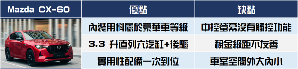 Mazda CX-60 缺點二:稅金級距不友善
