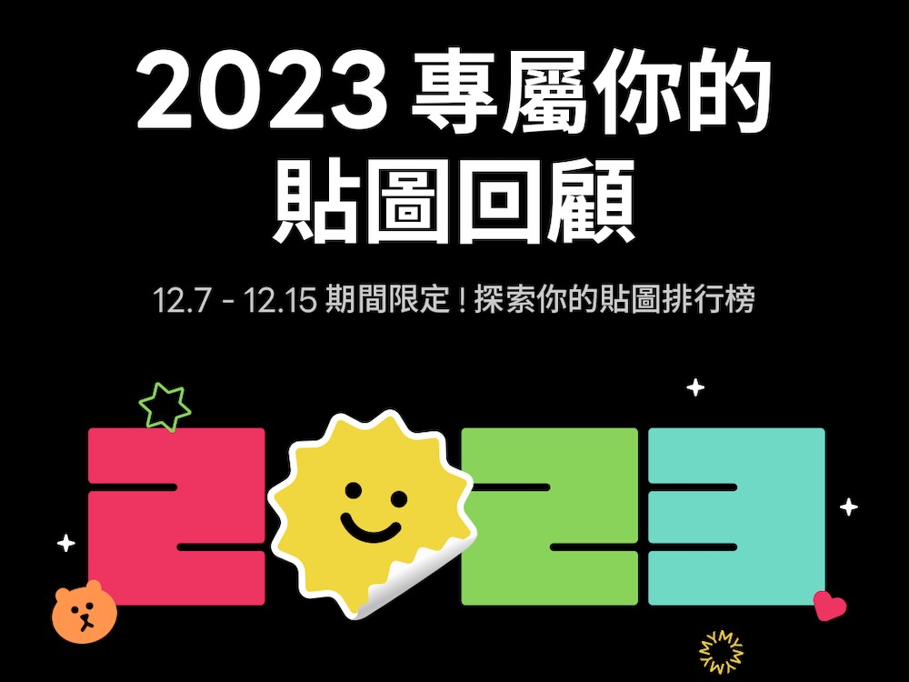 LINE 貼圖同步公布 2023 年創作者平均累計銷售額,TOP 10 達 14.5 億日幣,TOP 5 則突破 19.5 億日幣,持續累積創作動能並開拓多元創意的舞台。LINE 貼圖超值方案於年初將主題納入方案中,帶動主題使用普及,加上一推出即廣受用戶喜愛的「主題自動輪播」功能,只要設定一次,就能讓系統「定時」變換背景!此外,今年再次同步推出「2023 我的貼圖回顧」活動,首次揭秘台灣用戶平均傳送 1,235 張貼圖及最常傳送的前三大貼圖內容,每位用戶參與活動就能看到自己今年最常傳送的貼圖前四名、最喜愛的創作者以及年度傳送貼圖總數量,還可得知自己贏過多少百分比的 LINE 用戶!