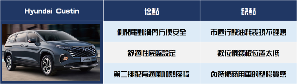 Hyundai Custin 優點一:側開電動滑門方便安全