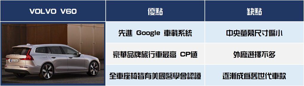 VOLVO V60 優點之二:豪華品牌旅行車最高 CP值