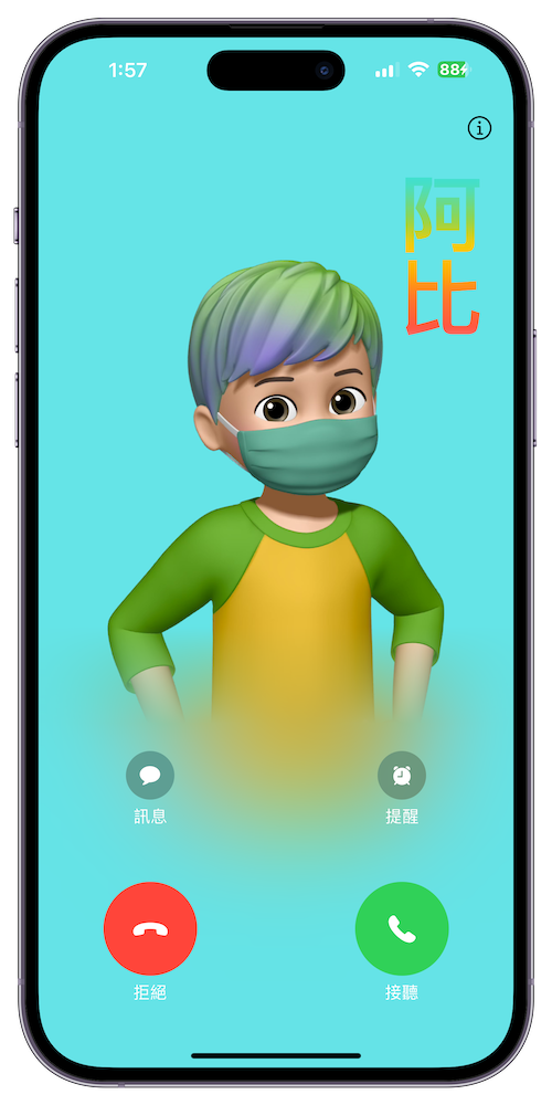 如果都已經做了卻還是沒辦法看到聯絡人海報,那麼不妨先請對方為你隨便用 emoji 符號來設計一個「聯絡人海報」後,等你撥打過去時,再透過右上角的「i」,按下「新的聯絡人照片」旁邊的「更新」接著選 「自動更新」後,畫面就會出現全螢幕的聯絡人海報了。