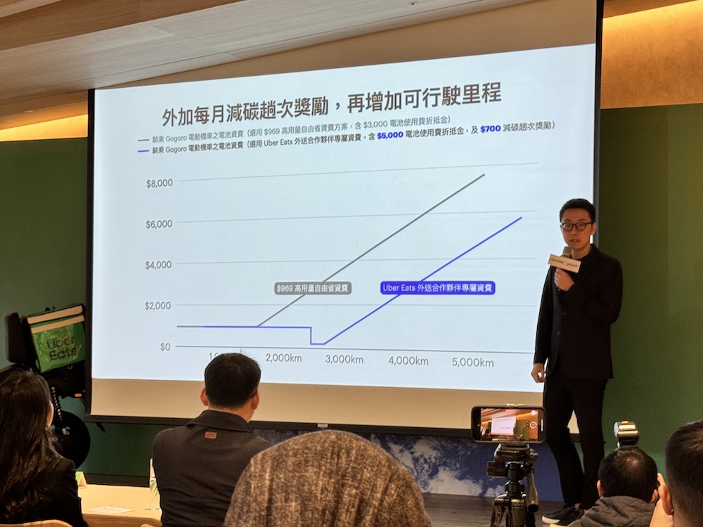 2025/12/19 前,Uber Eats 外送合作夥伴購買全新指定 Gogoro 車款,並登錄新購車輛資訊至 Uber Eats 夥伴端 App,可選購專屬 $969 元(綁約 24 個月)高用量自由省電池資費方案,每月還有機會獲得 Uber Eats 加碼提供減碳趟次獎勵。