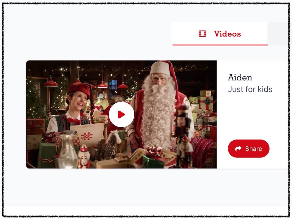 對小孩來說,這個影片中雖然只有提到自己的名字、現在自己幾歲以及對自己的讚美這些很簡單的資訊,甚至整個全英文的影片對孩子來說也不見得真的能通通理解他在講些什麼,但突然打開信箱看到來自聖誕老人給自己的問候影片,這樣的驚喜感或許就是這聖誕禮物的真諦呢!