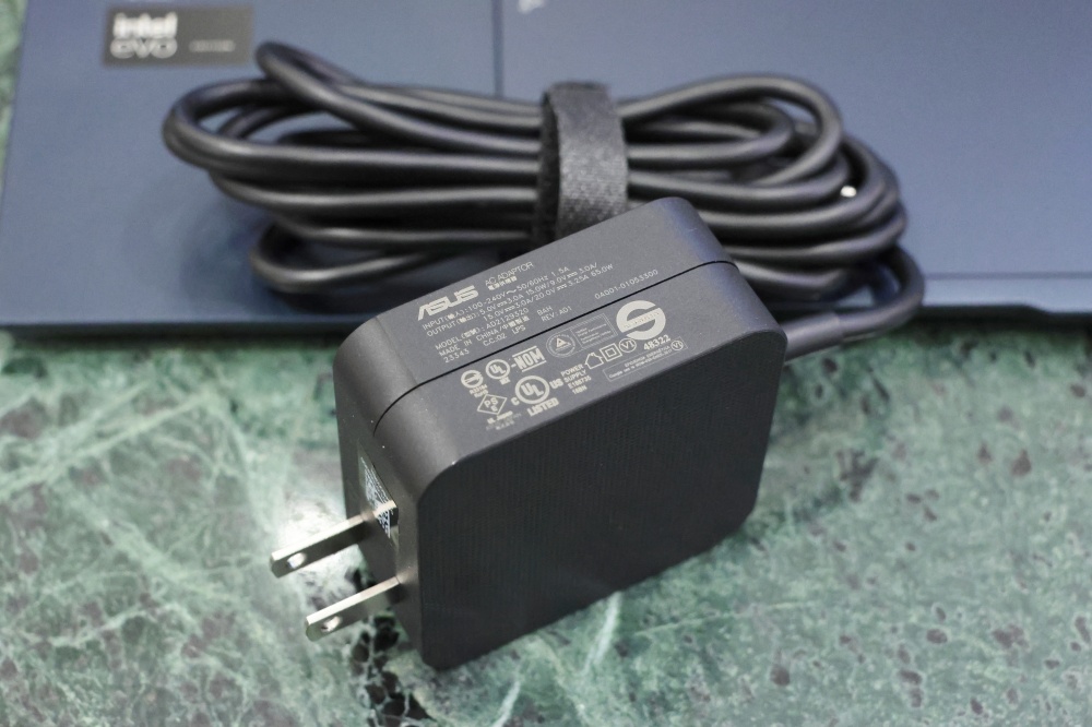 充電則支援快充,透過隨附的 65W 變壓器,可以提供 20V/3.25A 的電流,最快 49 分鐘就可以將筆電從 0% 充電到 60%,不過充到一定電量後為了要保護電池、延長電池壽命,因此會調整為涓流充電,整個充飽電大約兩小時左右。