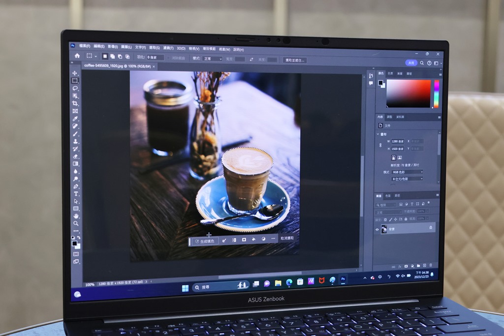 使用 Photoshop 的生成填色功能,在 Zenbook 14 OLED 運作也是非常有效率。