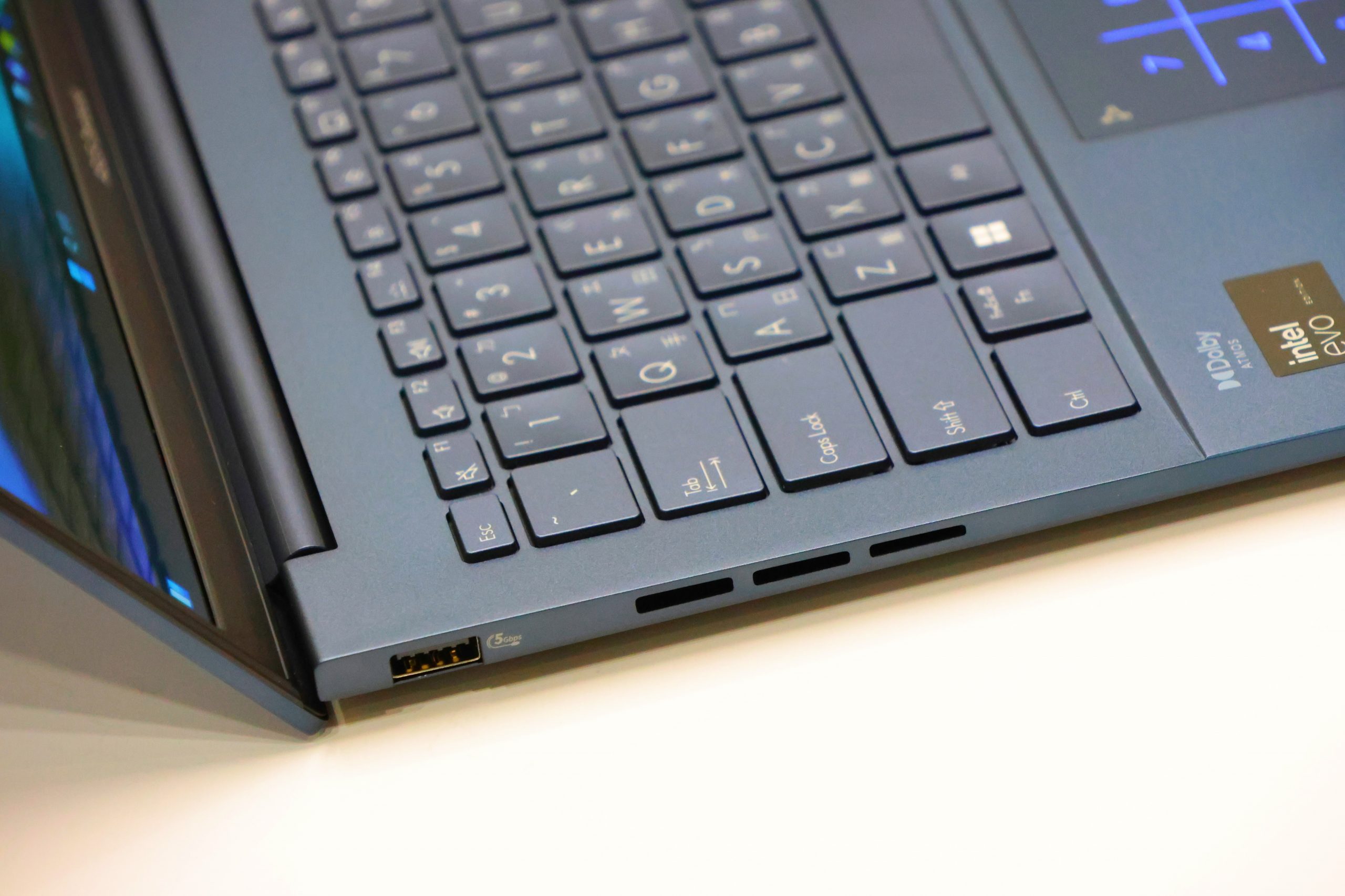 機身連接埠以輕薄筆電來說給的算很完整,右側有 HDMI、3.5mm 耳麥孔、兩個 Thunderbolt 4 USB-C 連接埠以及指示燈號,左側有 1 個 USB 3.2 Gen 1 Type-A,搭配外接螢幕使用或是搭配各種擴充配件使用都很方便。
