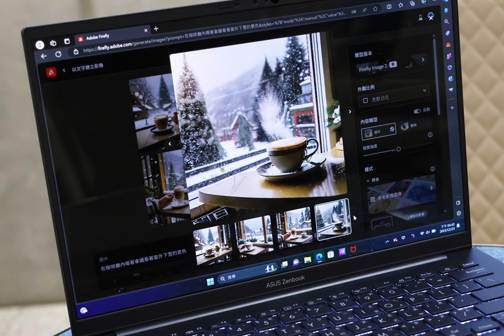 在 Zenbook 14 OLED 上使用 Adobe Firefly 速度很快,對於時常需要配圖的工作者來說真的是必備技能。