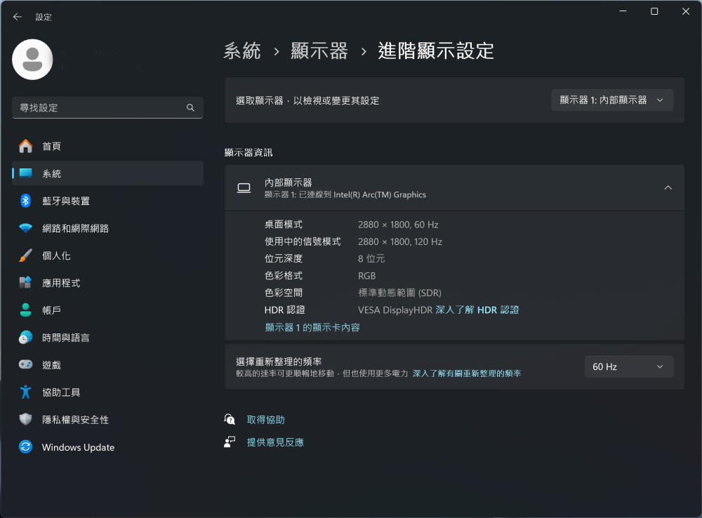搭配的螢幕規格為內建的 2880 x 1800, 120Hz 16:10 顯示器,並啟用 Intel® Arc™ 圖形處理器。