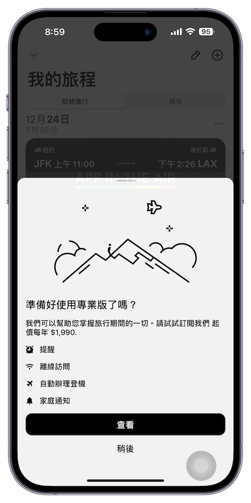 App 內還有提供付費的進階解鎖功能,能與朋友一起分享旅程與辦理自動登機。