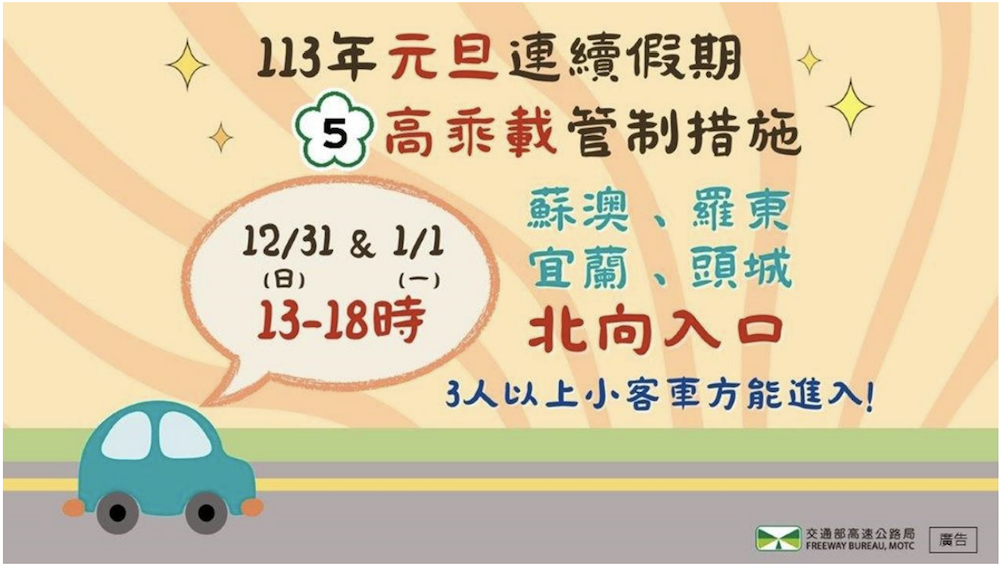 2024 元旦連假交通疏導懶人包:高乘載管制、匝道封閉、收費措施