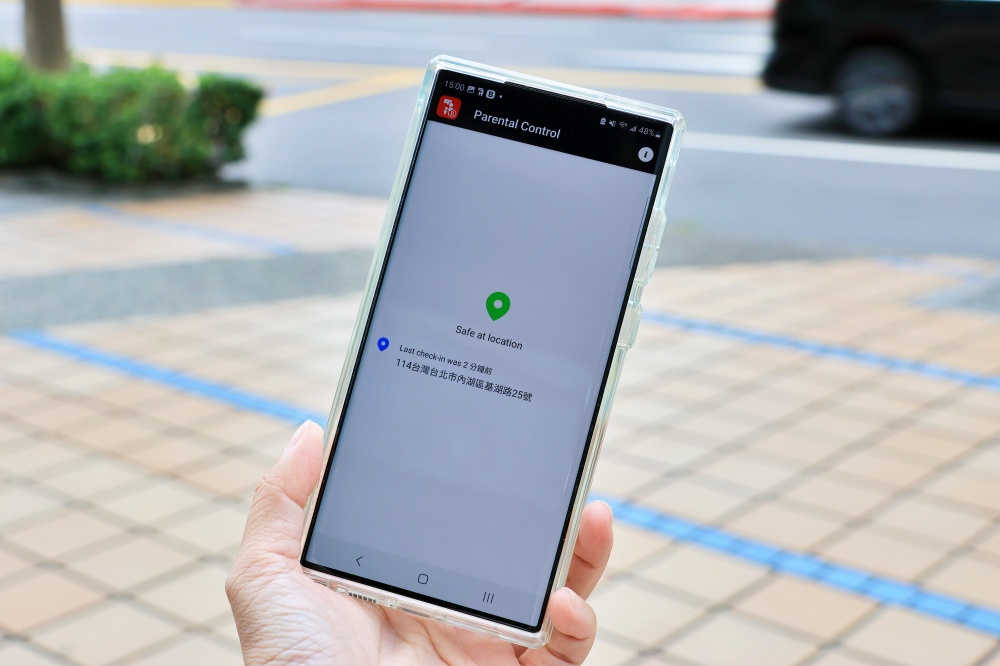 家長的中控台也會接收到兒童到達定位的通知,還會有位置地址資訊。