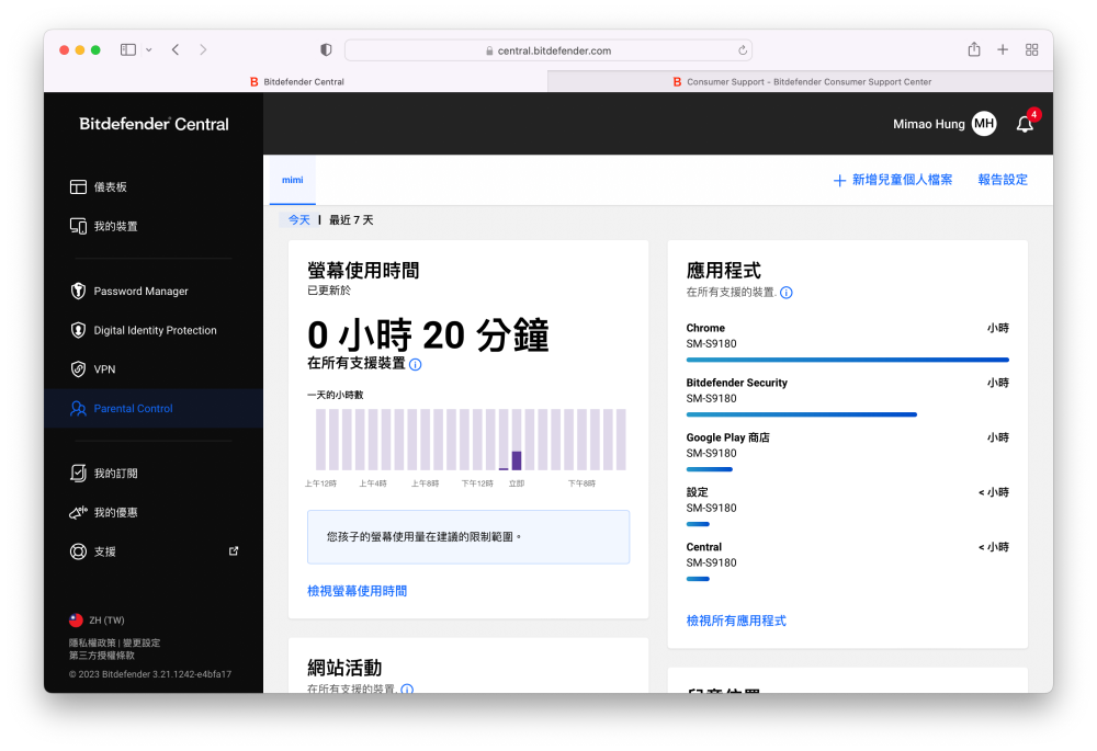 Bitdefender 必特防毒內建家長控制功能,不只可以限制兒童瀏覽的網頁,還可以查看兒童使用手機的時間有多長,分別在哪個應用程式花多久時間等等,不僅如此,連手機內的通訊錄有哪些人也可以查看。而且家長防護功能不限定只能設定一台裝置,如果兒童同時有平板或手機,兩台裝置都可以設定,或是家裡有很多個小孩,也可以為個別的小孩加上家長防護功能,守護孩子們的上網安全。