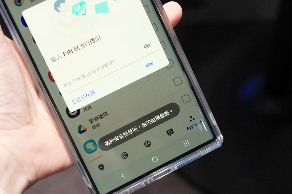 另外,不只應用程式上鎖功能,還可以鎖定應用程式,在使用應用程式當下就無法拍攝螢幕截圖,避免一些不能曝光的資訊以截圖方式流出。