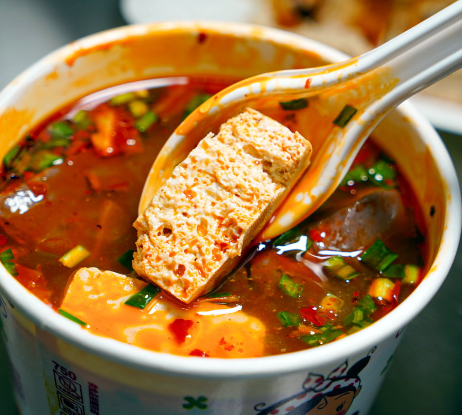▼鴨血給得超大一塊,份量十足,一口咬下柔嫩帶點小噴汁的快感,不僅毫無腥味,吸附麻辣湯頭後更是爽辣涮嘴!