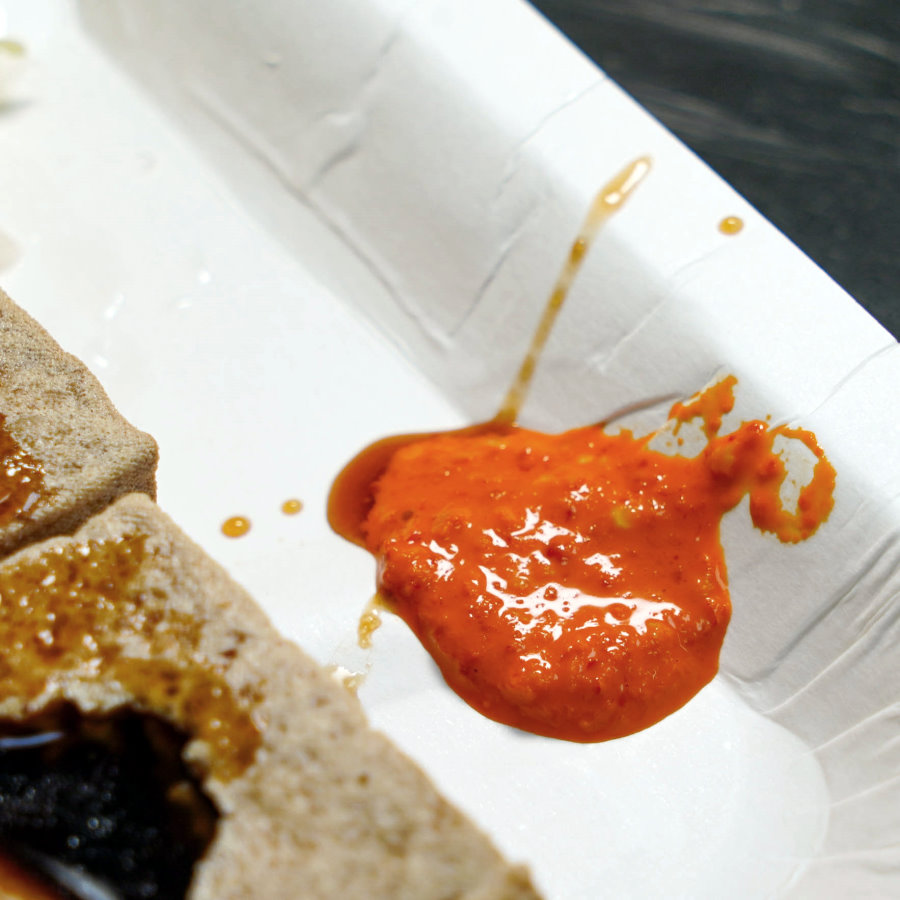 ▼敢吃辣的朋友一定要試試店家提供的辣椒醬,使用朝天椒炒製而成,香氣十足又帶有辣勁,辣度還不低,嗜辣的朋友一定可以吃得很過癮!