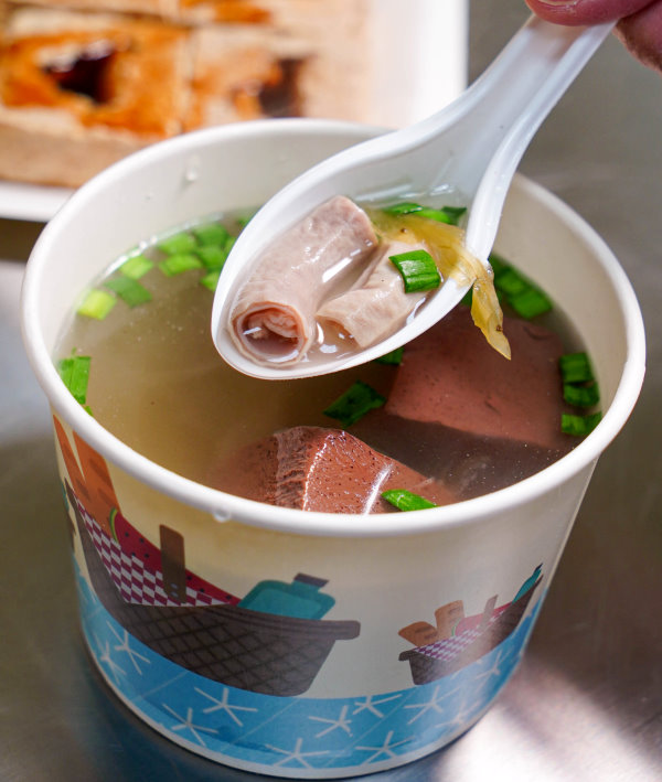 ▼小腸豬血湯,裡頭有豬血、小腸、酸菜、韭菜等配料,小腸軟Q好嚼,湯頭鹹香甘醇又帶點酸爽的滋味,算是很爽口!