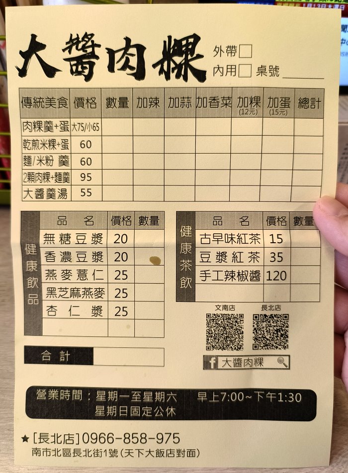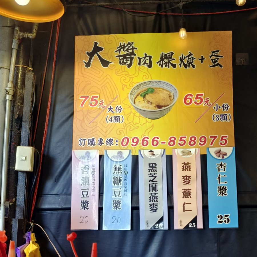 ▼這間招牌為肉粿羮+蛋,小份是3顆肉粿+蛋(65元)、大份則是4顆肉粿+蛋(75元),另外還有非基改豆漿、黑芝麻燕麥、燕麥薏仁、杏仁漿等飲品可供點選。
