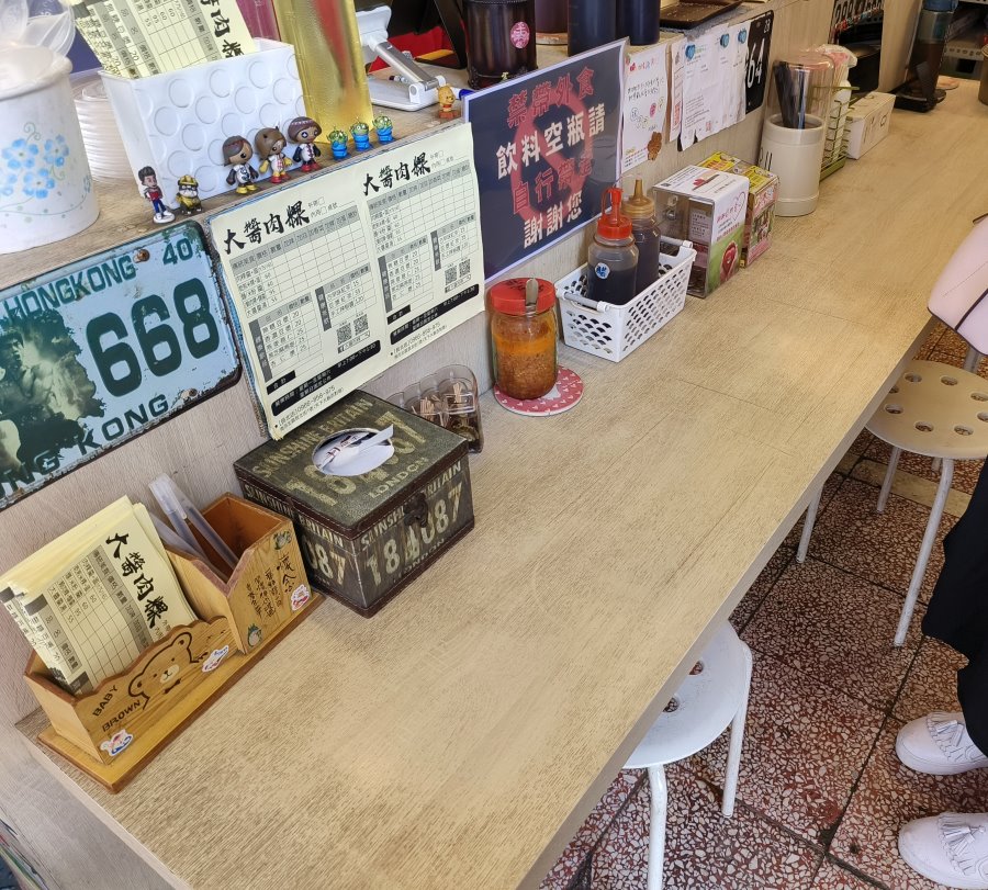 ▼座位區大多在櫃檯前方,另外還有一張獨立的雙人座位區,桌上都有擺放醬料、餐具、紙巾。