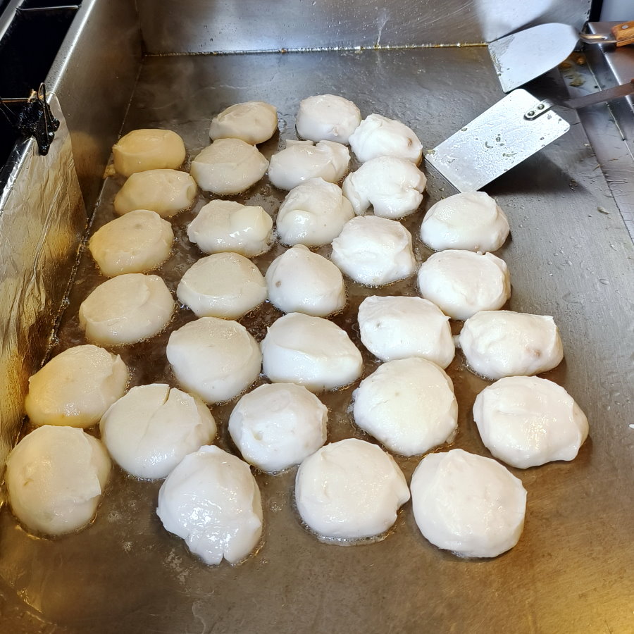 ▼接著再將做好的米粿放入鍋中煎至兩面恰恰,就可以起鍋啦~~老闆娘說有些人會先將米粿蒸熟後再煎,時間也可以縮短許多,不過口感就會比較紮實,她們家的就是直接下鍋香煎,吃起來外酥內軟嫩,還帶點糊化軟綿的口感很誘人啊!