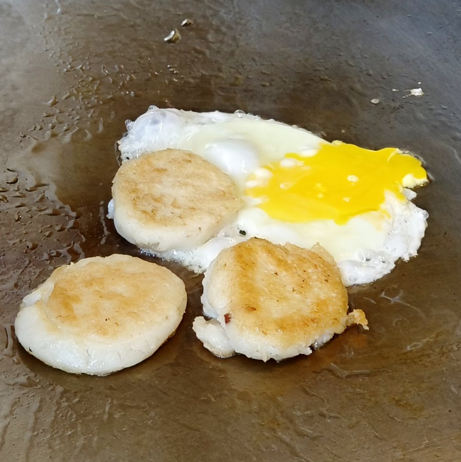 ▼煎至金黃微酥的米粿再打上一顆荷包蛋,就是營養又美味的早餐啦!