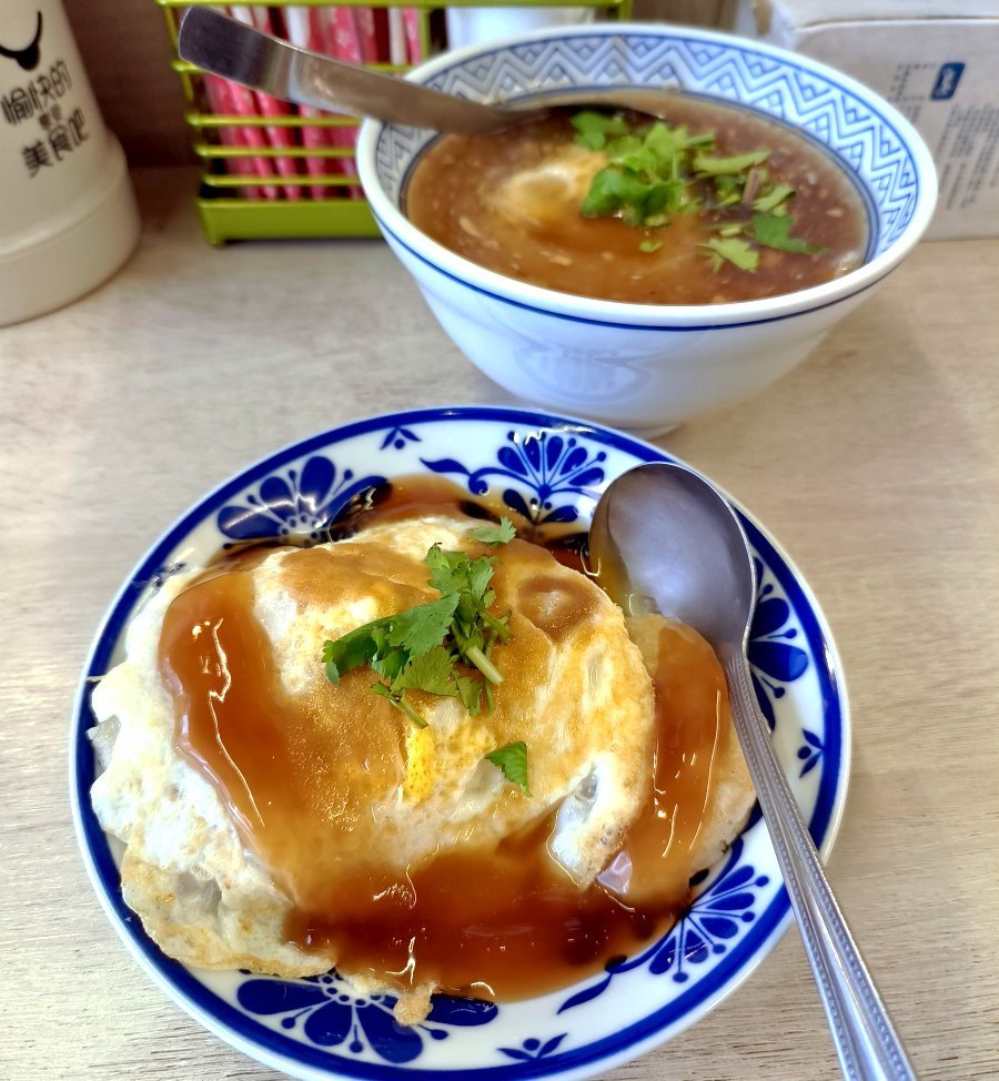 ▼乾煎米粿+蛋、肉粿羮+蛋(小份),我們各來一份試試;老闆娘說原本店內沒有販售乾煎米粿,但因為有些長輩無法喝羮湯,所以才特別拉出來賣,真的是超貼心啊!