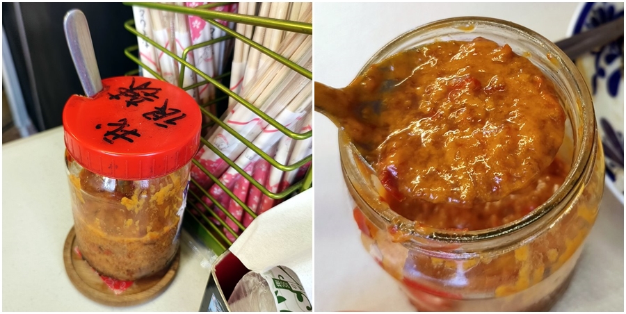 ▼敢吃辣的朋友一定要試試老闆娘親手炒製的辣椒醬,雖然辣度不低,但是加一點點吃起來香氣更爆棚,層次更提升不少,而且只會辣口不會辣到喉嚨、肚子去,大家都可以放心享用。