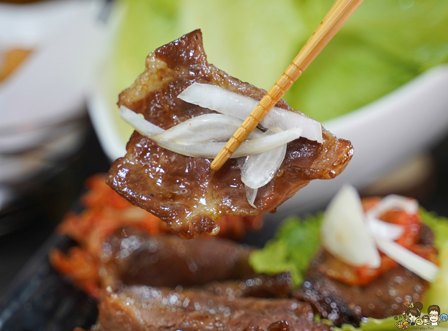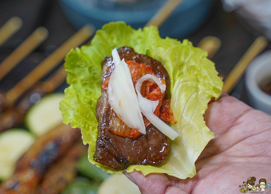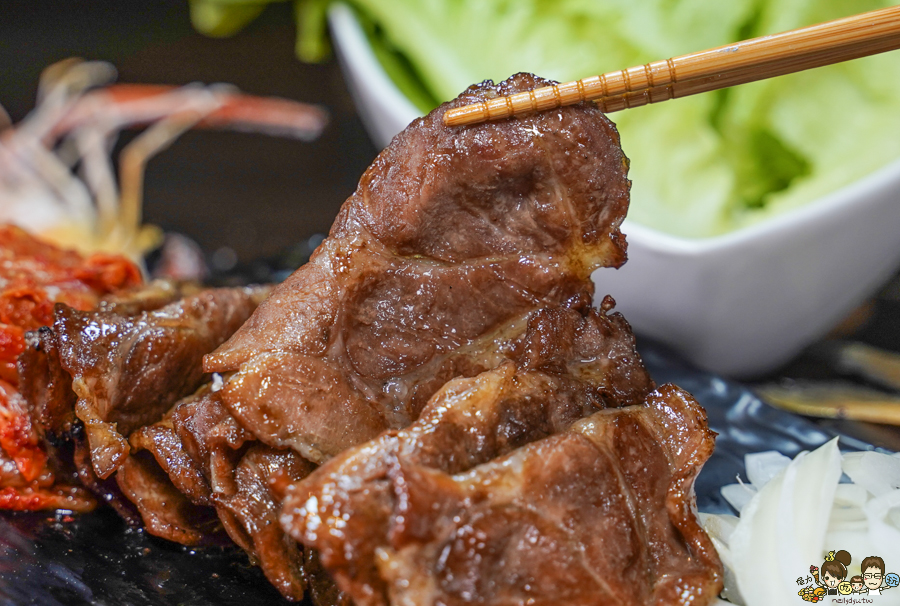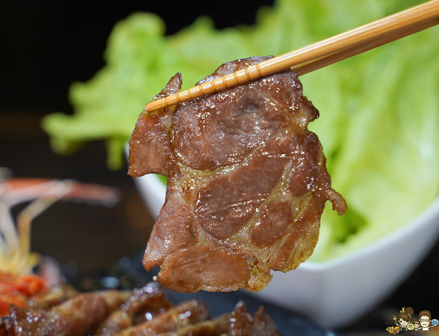 帶有韓式作法的生菜燒肉,使用梅花肉製作烹飪的醬燒烤肉