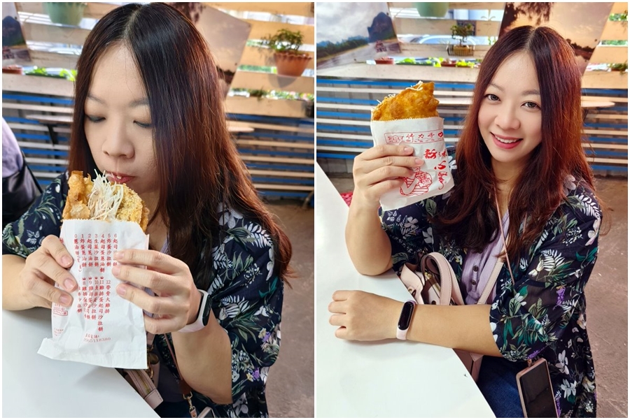 竹力亭炸蛋蔥油餅」就位於台南永康復華夜市旁,從小攤車做到現在擁有小小店面,至今已經是飄香10年的美味,每到下午總是有絡繹不絕的人潮,老闆娘更是電話接不停,在地朋友都熟門熟路的先打電話預訂再來取餐;我們點的是雞排蛋沙拉蔥油餅,不僅份量十足,酥脆的餅皮搭配獨門梅子醬、胡椒鹽與邪惡的半熟蛋、現炸去骨雞排、菜絲沙拉,一口很難完全咬下,吃起來層次多元又爽口,鹹甜交錯的口味好迷人!