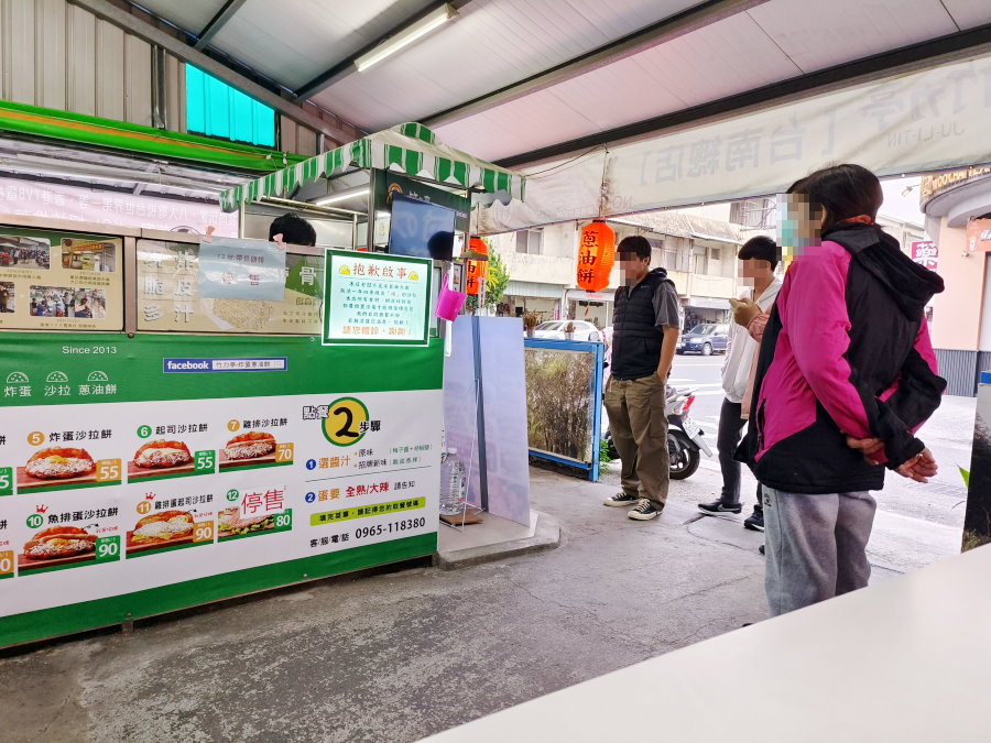▼菜單,目前有提供12種餐點,選擇竟然還多到要用編號才可以(笑)!我們點的是8號雞排蛋沙拉餅原味,喜歡吃辣的朋友也可以試試他們家的辣醬,聽說也不錯;另外這裡提供的都是半熟蛋,想要全熟蛋或是大辣的朋友記得提早告知,點好餐後老闆娘會撕下存根聯,讓客人憑號碼取餐。