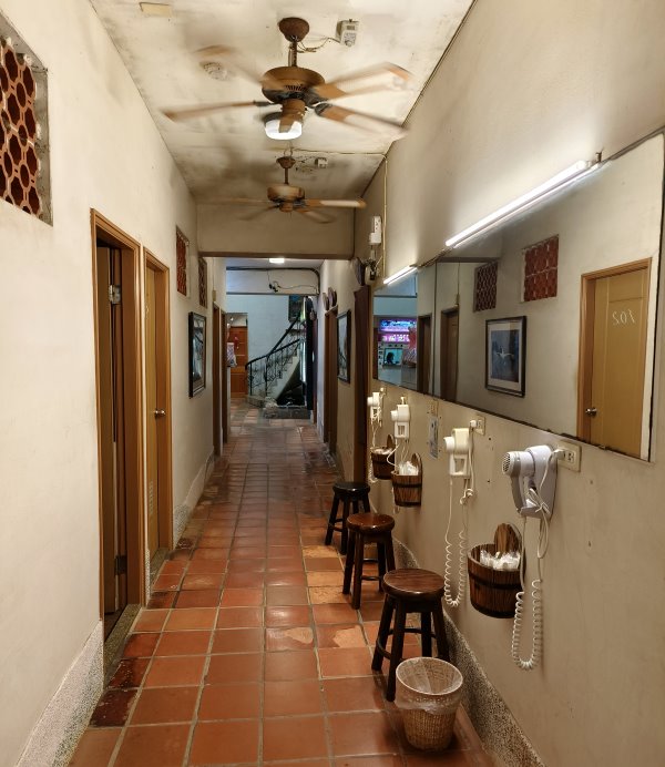 ▼我們後來選的是北海風情湯屋,一次就可以享受冷、熱雙泉的泡湯樂趣啦!走廊備有吹風機,也有洗手間,提供大家使用。
