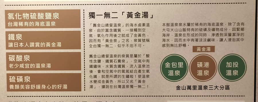 冬天就是泡湯的好時節~~「舊金山總督溫泉」位於新北金山,是早期日本總督泡湯的高級場所,帶有古色古香的氛圍,不管是想泡大眾池、冷泉、湯屋、男湯、女湯通通有!這裡的溫泉屬於稀有的海底溫泉,經氧化作用形成金黃色湯質,因而有「黃金泉」的美名;除了有大屯火山山脈獨有的硫磺及礦物成份之外,也因緊鄰海岸,溫泉形成時滲透到深層潔淨的海水,所以水中還有淡淡鹹味,獨特的泉質非常值得一泡~~我們泡完之後皮膚超咕溜,整個身心靈都舒緩不少,很適合最近這種微涼天氣來放鬆一下!