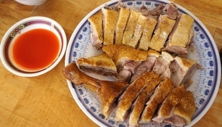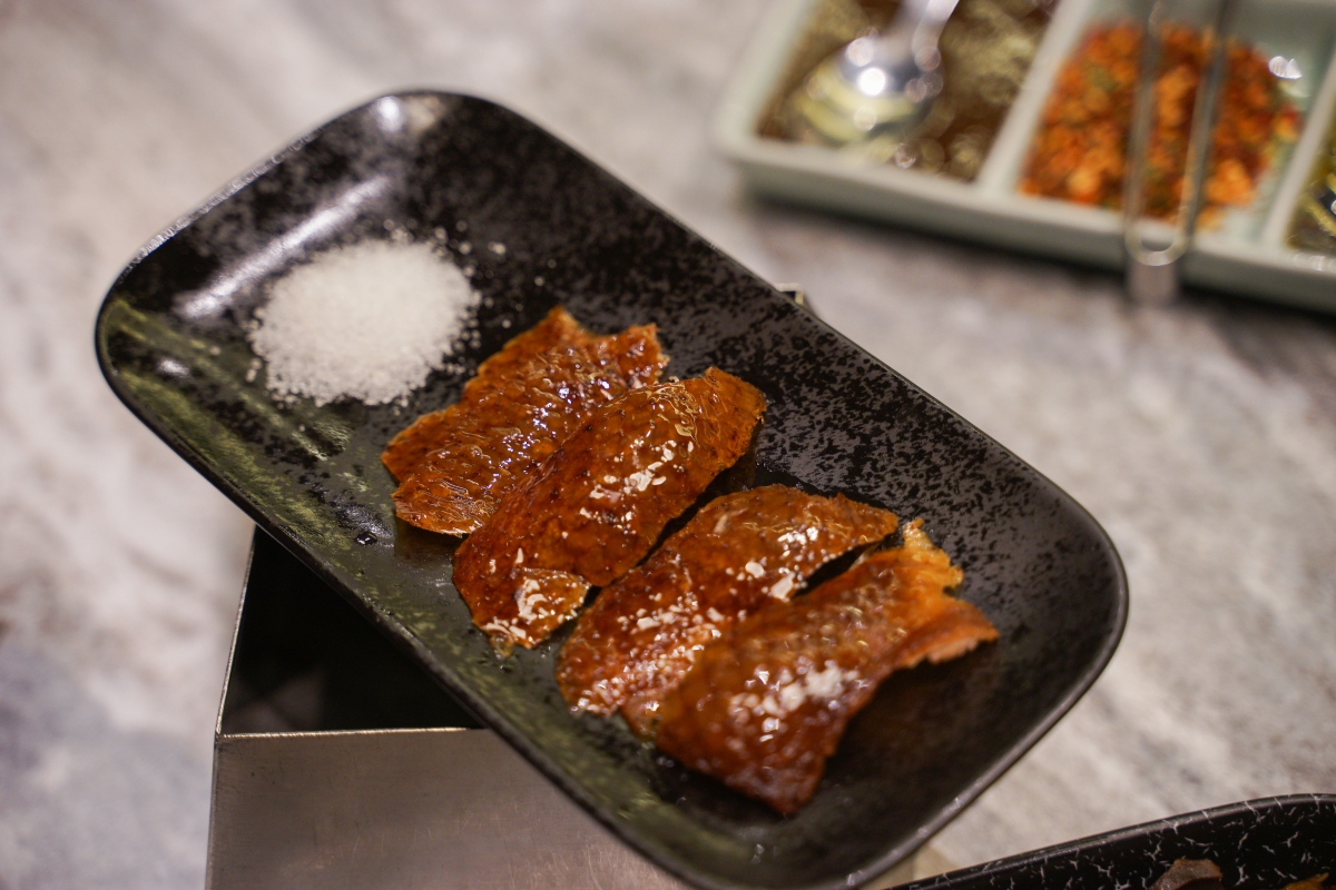 由於片鴨的鴨肉油脂不比鴨皮,因此建議可以搭配醬料入口!