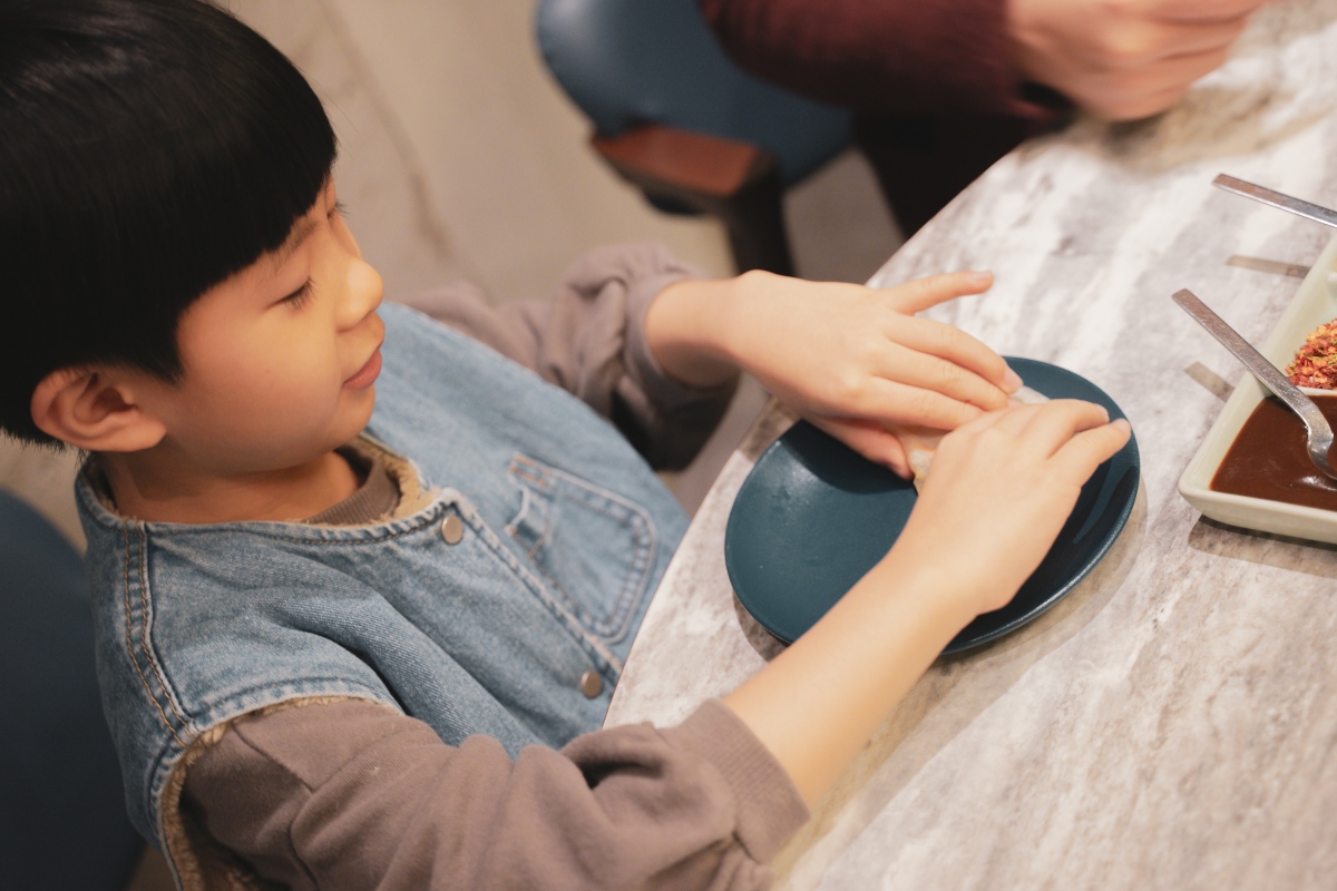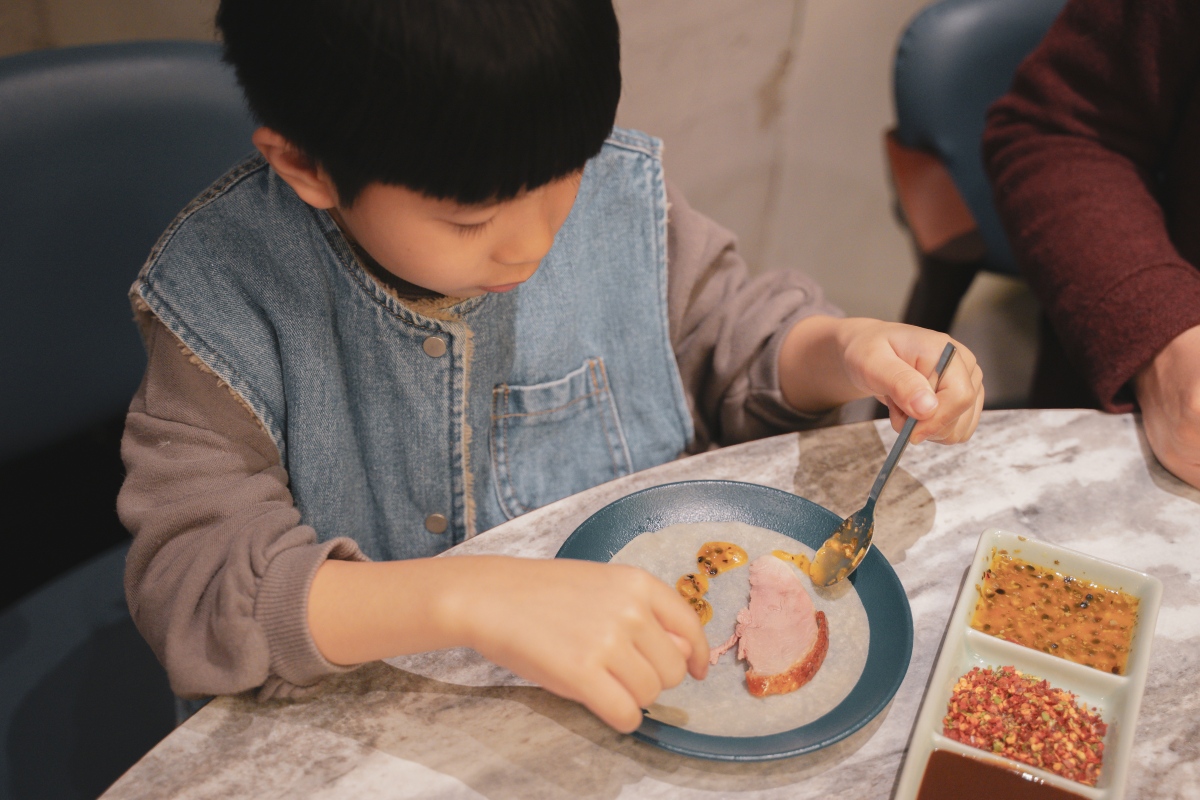 小孩也能自己動手包自己的鴨肉捲餅,互動性十足,吃自己包的捲餅非常認真~很推薦大家可以帶小孩來用餐,熱鬧的開放式用餐空間,也不怕打擾到其他人,是歡樂的用餐氛圍,可以隨性開心的在餐桌上和孩子聊聊今天發生了什麼有趣的事~
