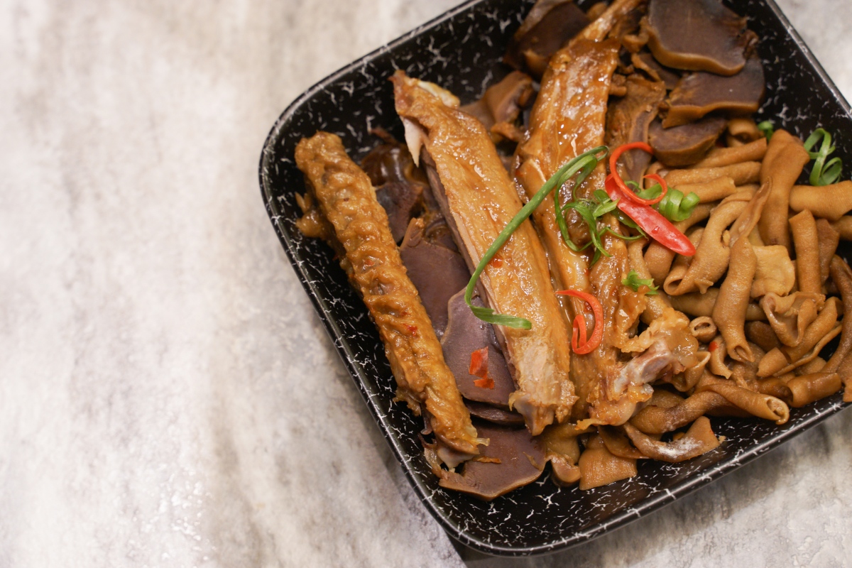 三寶拼盤中有冰糖醬香鴨翅、醬滷鴨胗、醬滷鴨腸,這是兩人分享餐中可以選擇的菜色唷!