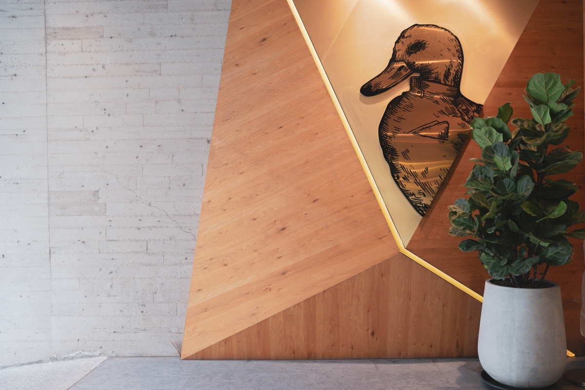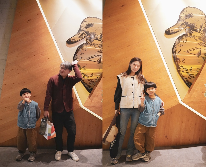 門口旁有隻小鴨等著客人光臨,使用三角型的木塊拼組呈現立體感,真的是一間很有時尚感的烤鴨專賣店。很推薦大家可以在這邊拍照紀念,和孩子一起格外童趣。