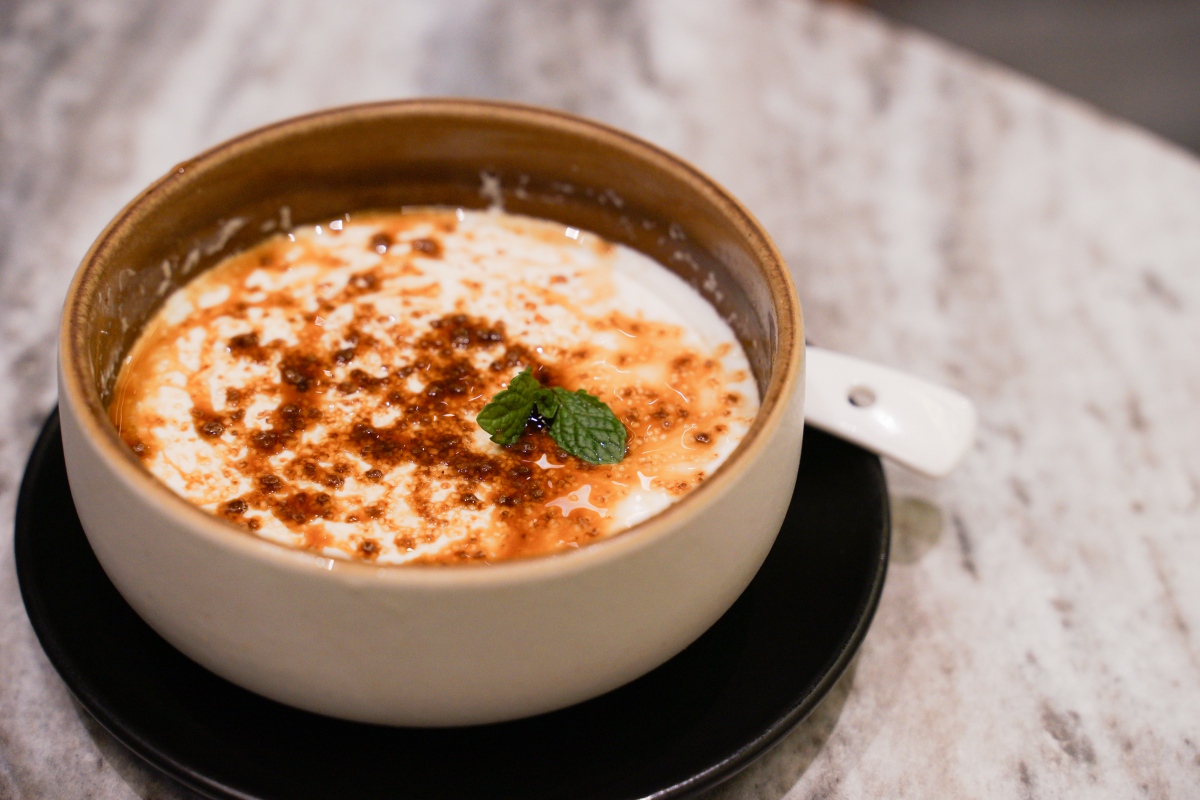 孩子直接來一碗脆糖燉奶,上面有一層甜脆的黑糖,是阿福的最愛,直接光速吃完~實在太讚!