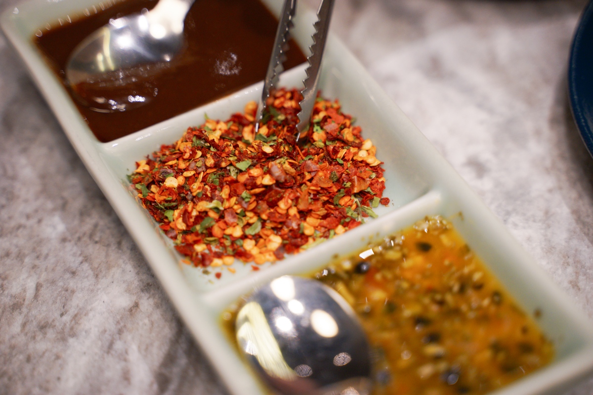 我一般吃烤鴨包荷葉餅只會加入甜麵醬、蔥段,也就是最經典的吃法,但如果你們來享鴨,一定要試試他們的花椒鹽,非常香!不會很辣,無論是包在捲餅裡吃,還是直接蘸著入口都很美味~