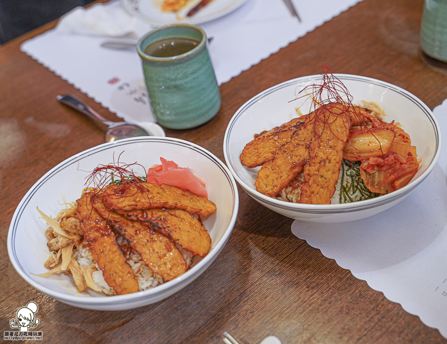 炙燒雙拼丼飯、泡菜雙拼丼飯,特色小菜美食