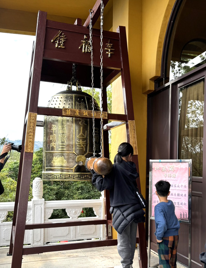 一邊敲一邊祈求吉祥平安,旁邊都會有敲鐘的文字可以照個唸