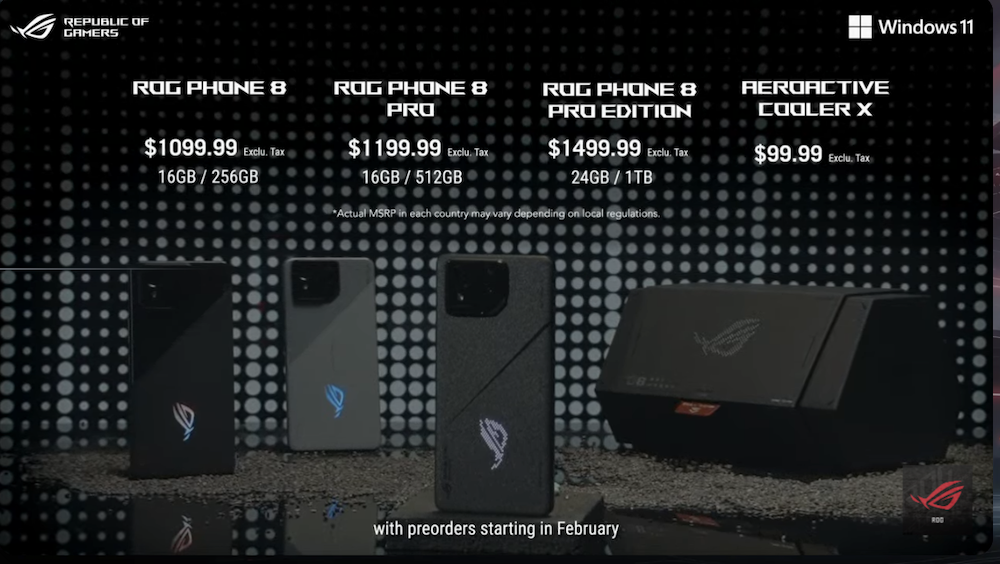 ROG Phone 8 Series 售價 1099.99 美金起,預計將於 1 月 16 日台灣正式發表。