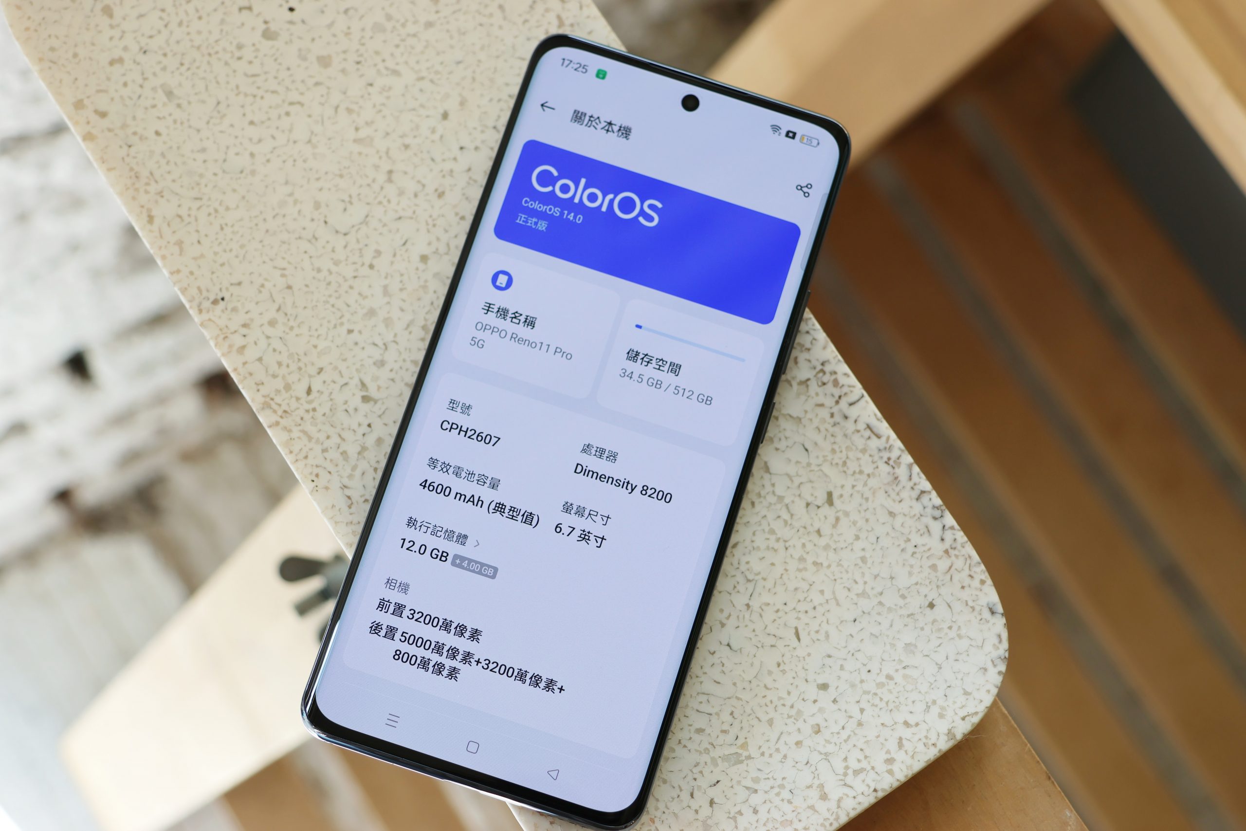 從設定裡的關於本機可以看到 Reno11 Pro 的硬體規格配置以及軟體版本。