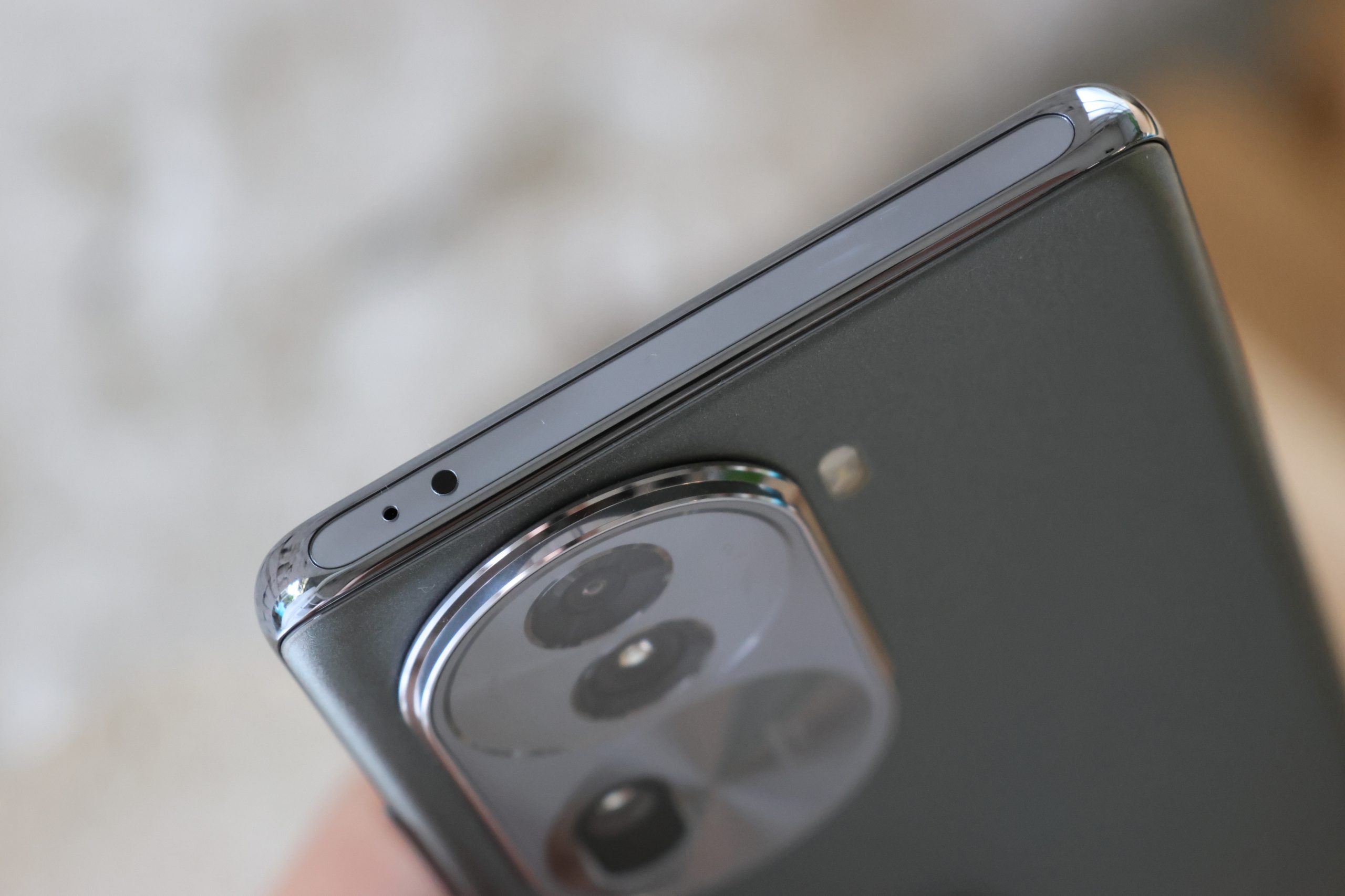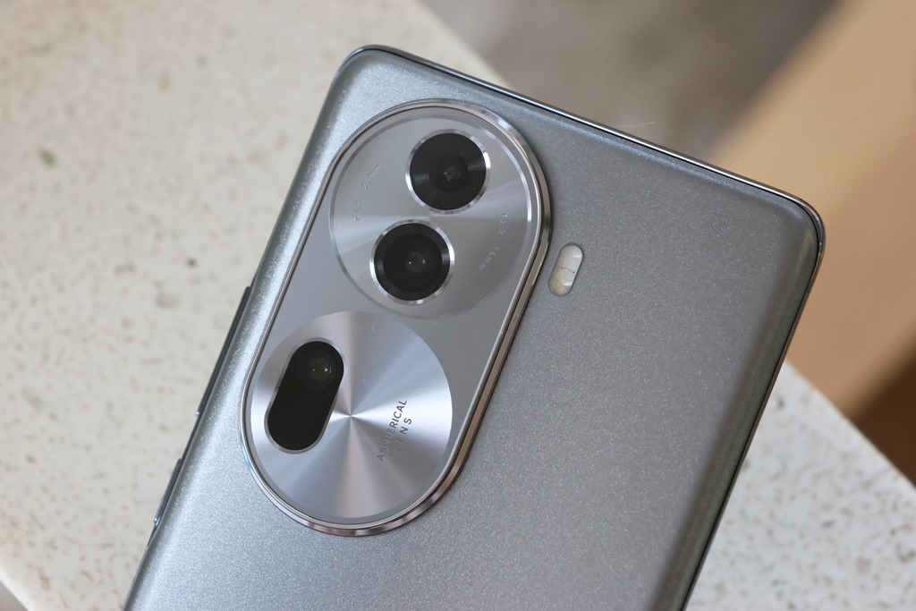 機背上最顯眼的就是主鏡頭模組了,由上而下分別是超廣角鏡頭、主鏡頭和長焦人像鏡頭,鏡頭外框造型維持和前一代相同的舷窗概念,有點橢圓形的膠囊狀的感覺,辨識度頗高。